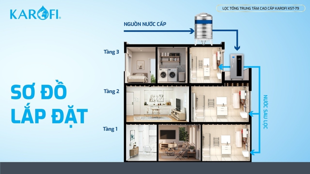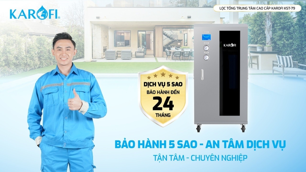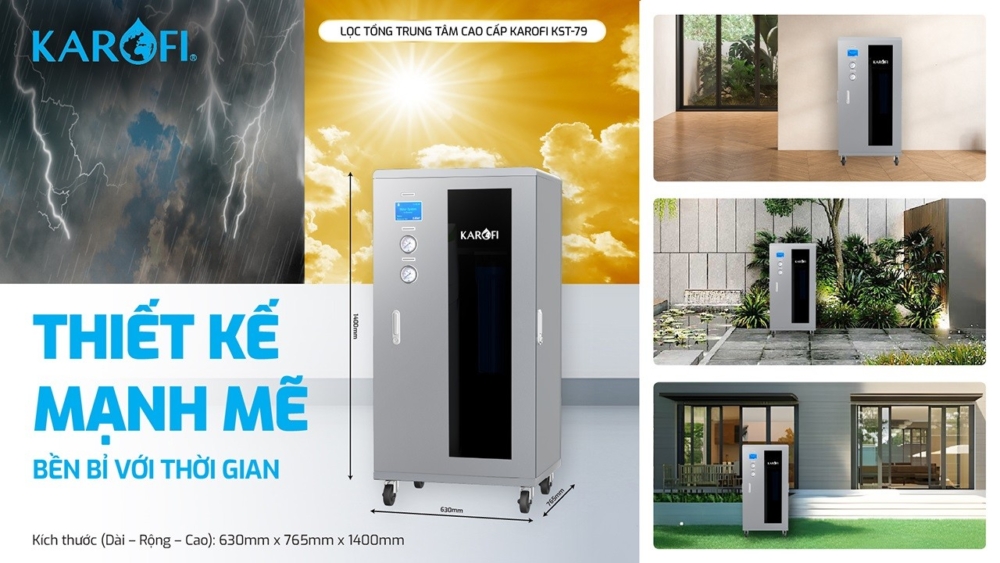 Lọc tổng trung tâm cao cấp Karofi KST-79 là giải pháp hoàn hảo cho gia đình hiện đại, đặc biệt phù hợp với không gian villa, nhà có sân vườn. Sản phẩm gây ấn tượng với hiệu năng lọc vượt trội, giúp loại bỏ tối đa Clo dư, cặn bẩn, kim loại nặng cùng các tạp chất độc hại có trong nguồn nước đầu vào.