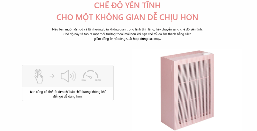 Thiết kế nhỏ gọn, dễ đặt ở bàn hoặc góc tường: Với trọng lượng nhẹ và kích thước khiêm tốn, máy dễ bố trí trong phòng ngủ, phòng khách, văn phòng nhỏ.