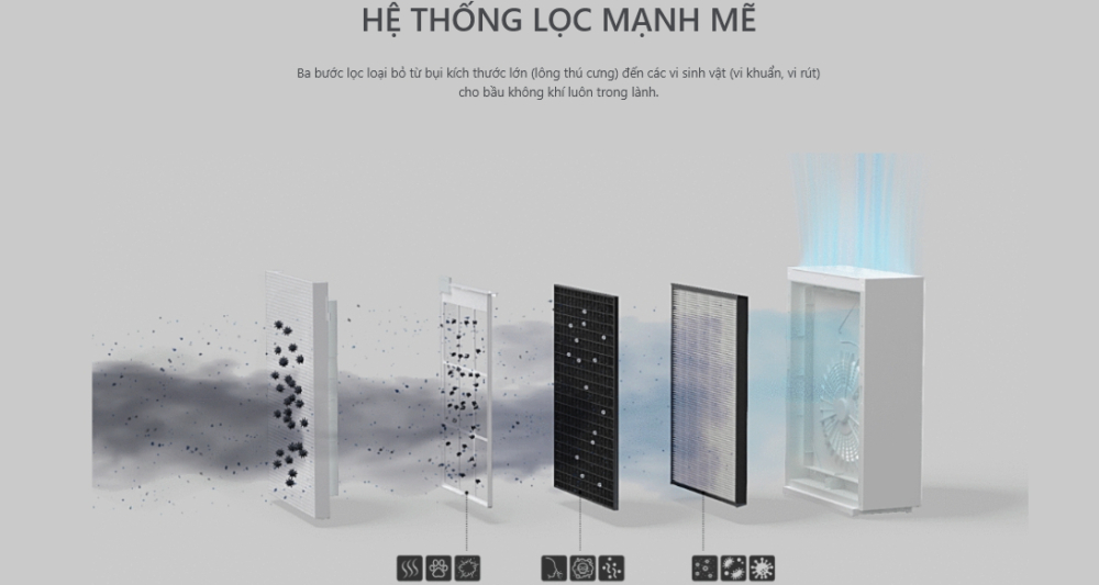 Không khí sạch mọi lúc: Máy lọc bụi siêu mịn, khói, phấn hoa, vi khuẩn, bụi nhà rất phù hợp với không gian thành phố, căn hộ chung cư.