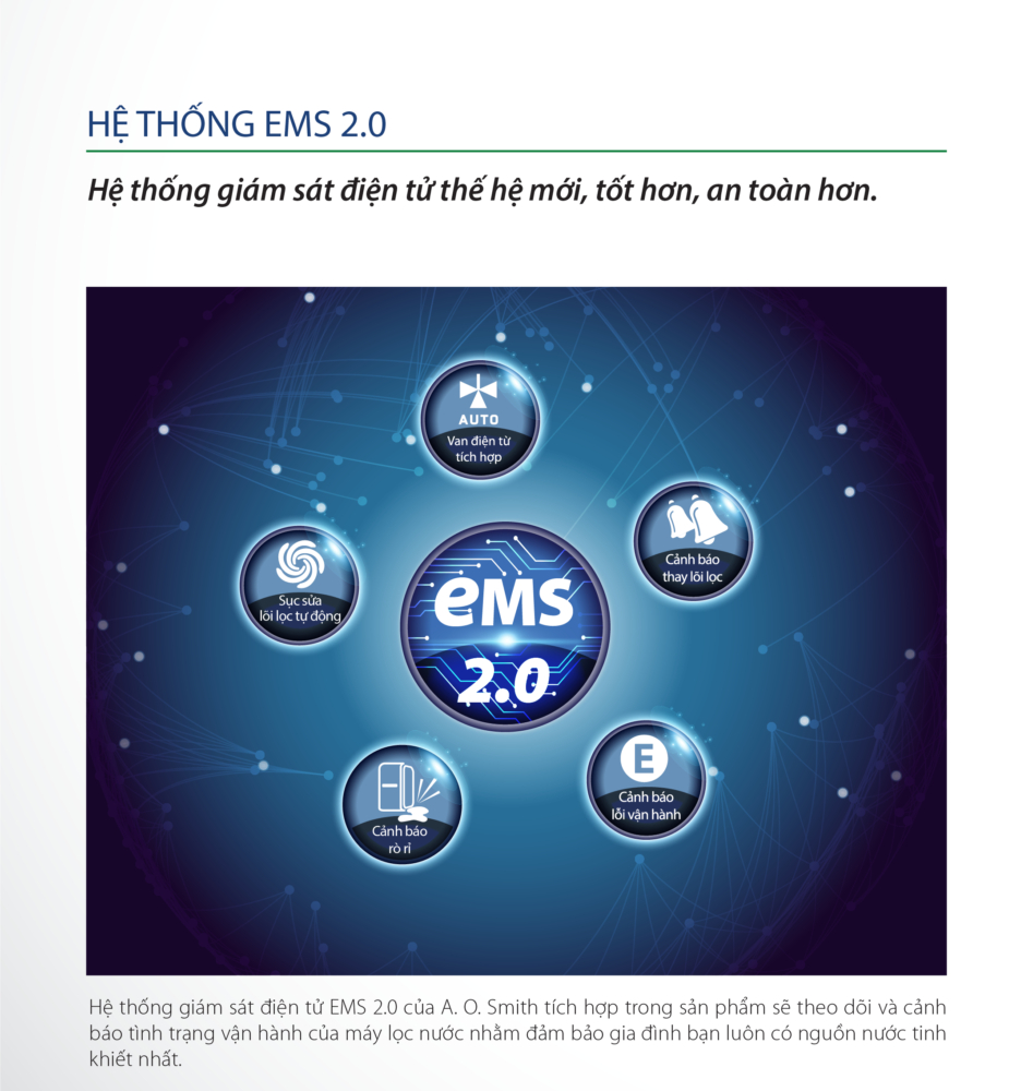 AO Smith E3 trang bị hệ thống EMS 2.0 thế hệ mới, giúp theo dõi và điều phối hoạt động máy thông minh: