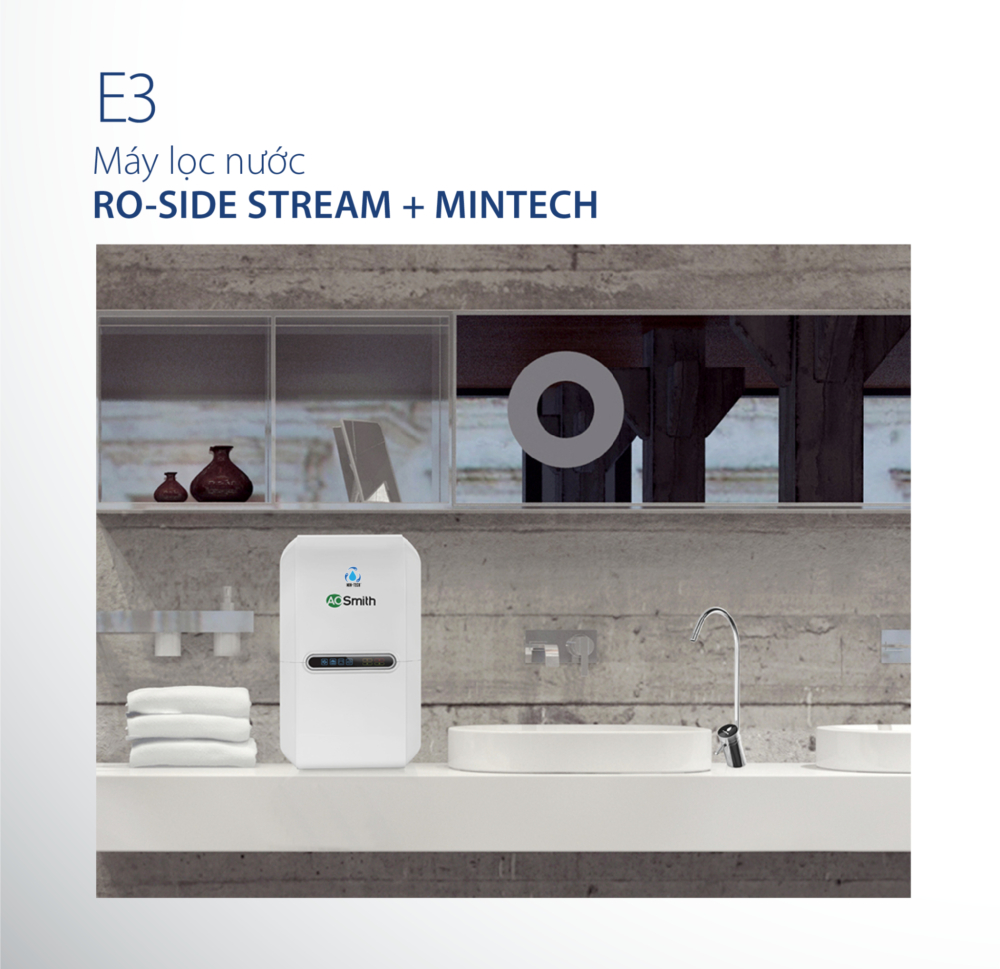 Máy lọc để gầm AO Smith E3 sử dụng màng lọc RO-Side Stream – một phát minh có bằng sáng chế của AO Smith tại Mỹ, giúp tăng hiệu quả lọc nước và tuổi thọ lõi so với màng RO truyền thống. Màng có khả năng loại bỏ đến 99,9% vi khuẩn, kim loại nặng như asen, chì, thủy ngân… trong nước.